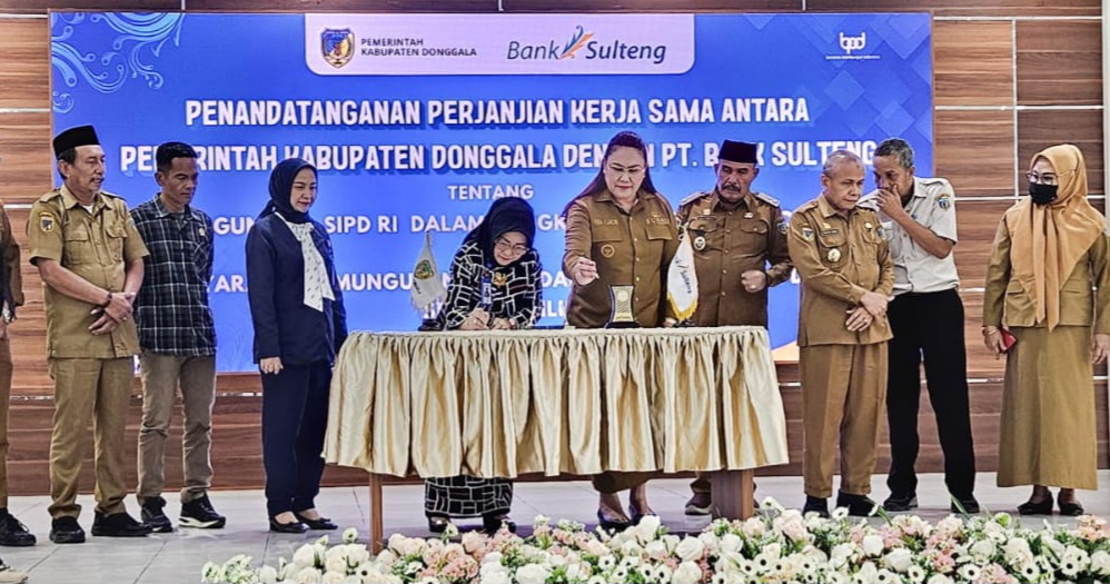PT Bank Pembangunan Daerah Sulawesi Tengah (Bank Sulteng) bersama Pemerintah Kabupaten Donggala resmi menandatangani kerja sama penerapan Surat Perintah Pencairan Dana (SP2D) Online, Selasa (2/9) di Kantor Bupati Donggala.
